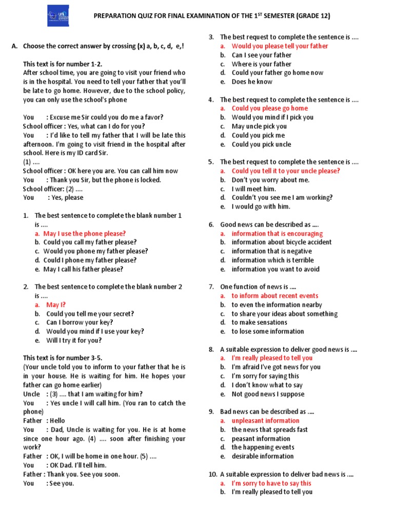 LATIHAN SOAL MANDIRI ULANGAN AKHIR SEMESTER GANJIL TAHUN PELAJARAN 20162017 Alamat. Pada kesempatan kali ini IBI akan membahas tentang contoh soal bahasa inggris semester ganjil SMA kelas 12 oke langsug ssja mari kita simak bersama. Ulangan semester genap tahun pelajaran 2014 2015 nama sekolah mata pelajaran seni budaya d pelajaran matematika matematika kelas satu matematika kelas 5.