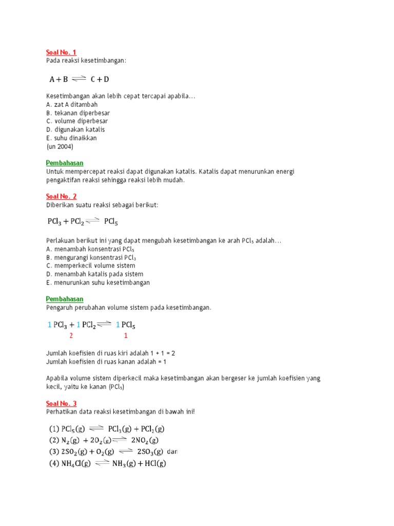 Contoh Soal Dan Jawaban Kesetimbangan Kimia Bali Teacher
