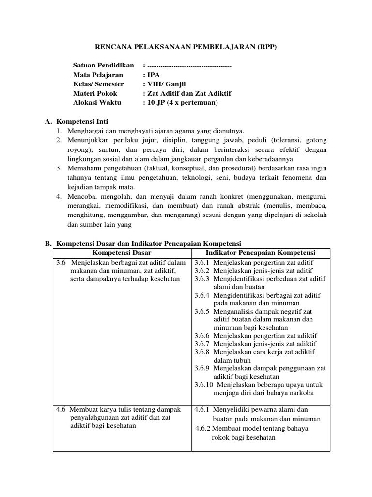 Ejercicio De Lkpd Materi Zat Aditif Dan Zat Adiktif