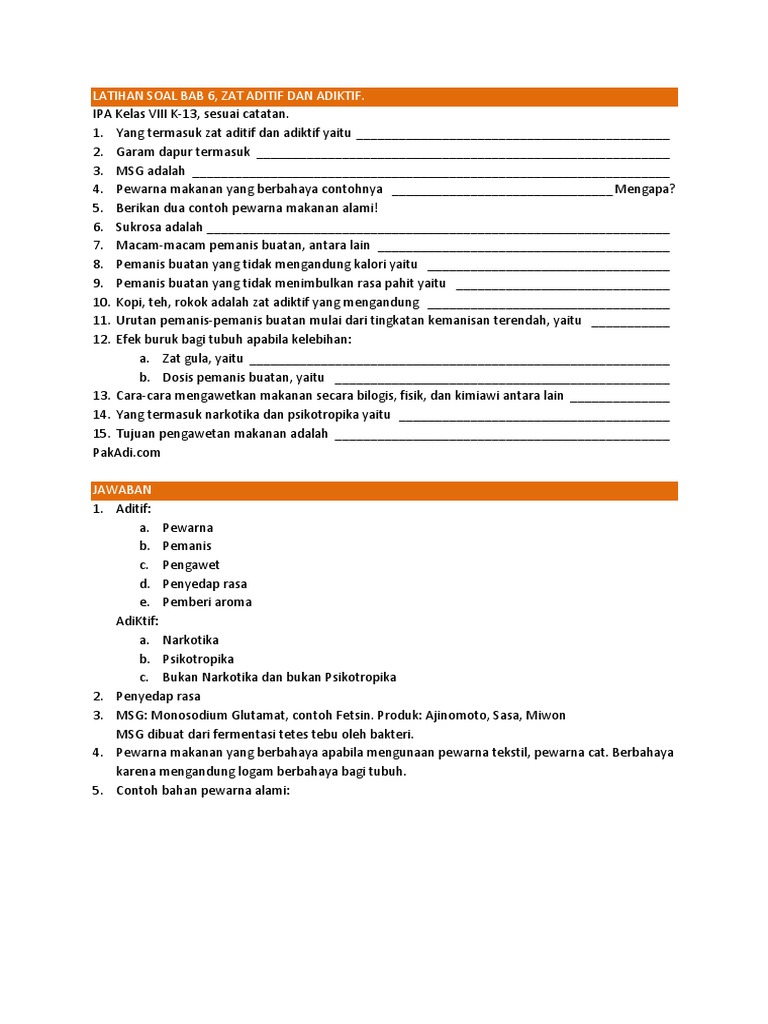 Soal Zat Aditif Dan Adiktif Kelas 8 Download File Guru